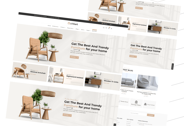 Multikart offers four options for blog listings, each with a stunning blog detail page and a grid and list.