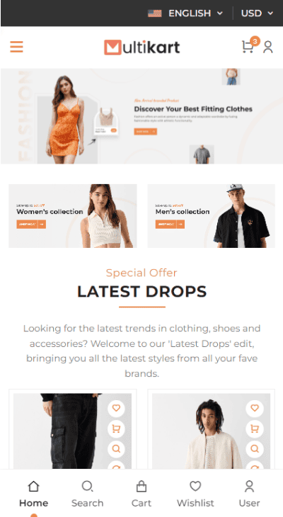 Multikart features a mobile-first design that resembles an app.